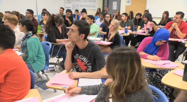This college level General Chemistry classroom is abuzz with inquiry. The syllabus states that “lecture time is to challenge your understanding of new information, and, more importantly, for you to grapple with this information along with your peers.” In this session, we see 55 students engaging with the electrochemistry concepts they previously encountered through reading and lab, driving their understanding forward through questioning and collaborative sense-making.