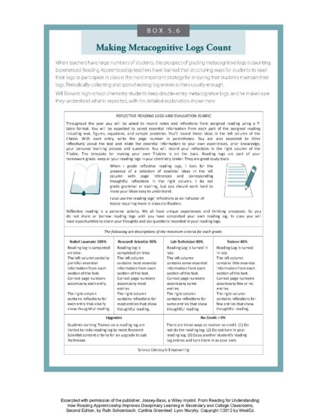 Experienced Reading Apprenticeship teachers have learned that structuring ways for students to need their logs to participate in class is the most important strategy for ensuring that students maintain their logs.